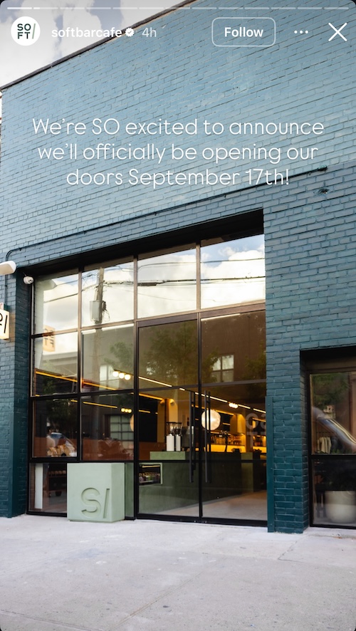 âWeâre SO excited to announce weâll officially be opening our doors September 17th!â he wrote in the caption of a post shared to Soft Barâs page on August 27.