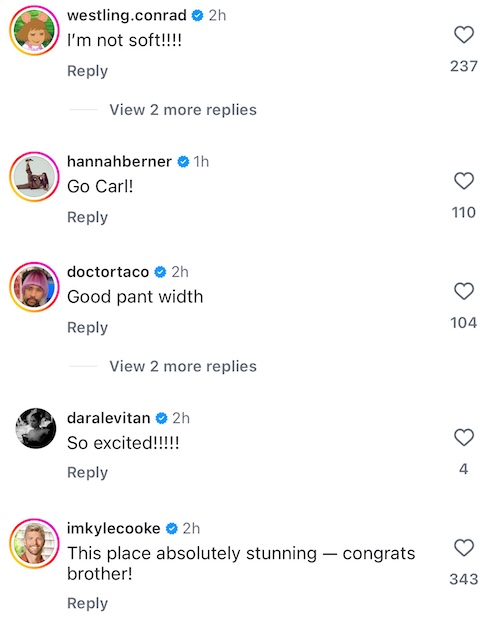âThis place is absolutely stunning â congratulations brother!â added Kyle.